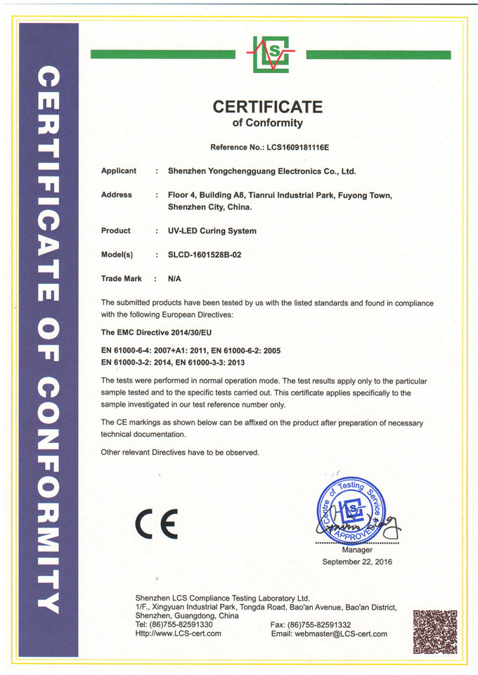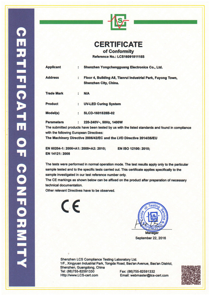 SHENZHEN YONGCHEN GUANG ELECTRONICS JOINT STOCK CO.,LTD Established in 2009, it is a national high-tech enterprise specializing in the research and development, production, sales and sedž ice of special industrial light source equipment and ice bath machines. It is the preferred paDž ner of leading brands such as Apple, Foxconn, Luxshare, Xiaomi, GoerTek and China Star Optoelectronics, with the largest market share. It paDž icipates in the formulation of national and industLj standards. Specializing in the production and sale of UV LED point light sources, line light sources, suDŽ ace light sources, curing machines and other products. Yongcheng Group has become a leading enterprise in the UV LED curing industLj , with its products widely used in printing, photovoltaic, lithium batteLj , furniture coatings, inkjet printing, inkjet coding machines, screen printing machines, optical ǁber communication, electronics, textiles, medical care and other ǁelds.