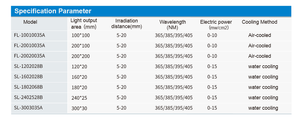 永成自主研发生产的一款高性能的UVLED面光源,可搭配控制器和散热器,UV光谱波长可根据客户需求进行定制,散热方式有风冷和水冷两种,有效固化面积也可根据需求定制,能独立使用,也能配搭于生产流水线上,支持外部信号输入和触发。<br> <br>